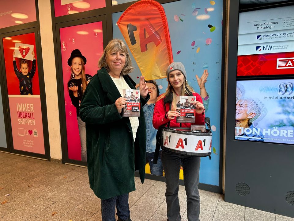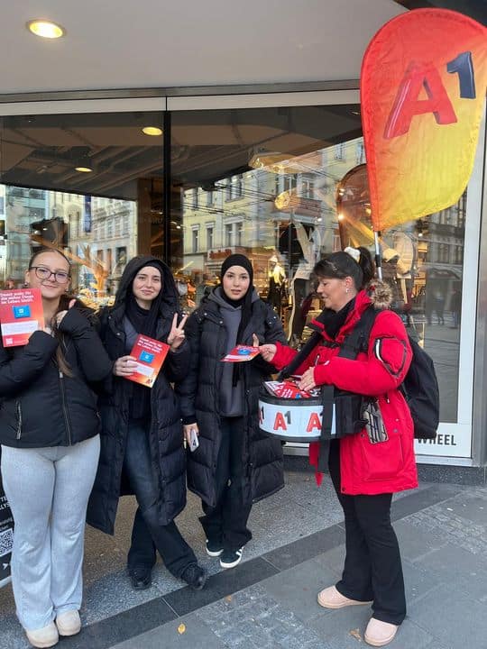Um das „günstig & gschwinden“ Internet von A1 aufmerksamkeitsstark zu bewerben, waren unsere Promotor:innen mehrere Tage lang in Linz unterwegs und haben Passant:innen an unterschiedlichen Touchpoints direkt angesprochen. Ausgestattet mit gut sichtbaren Fahnenrucksäcken und praktischen Bauchläden sorgte das Team für eine hohe Präsenz im Stadtbild, viele Interessierte gingen aktiv auf unsere Mitarbeiter:innen zu und freuten sich über die Aktion.